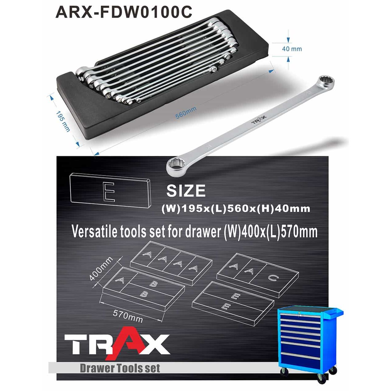 Introducing the Trax 11Pc Long Double Ring Spanner Set, ARX-FDW0100C, available right here from Industrial Shed on the Mornington Peninsula. This professional-grade tool set provides trade professionals with the essential spanners needed for various tasks, ensuring efficiency and reliability on the job. Whether you're tightening bolts or making adjustments, this set is designed to help you get it done right.