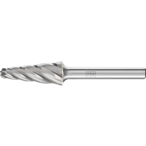 PFERD has further developed the ALU cut especially for stock removal on aluminium. This cut is characterized by its high stock removal rate. Conical burr with round radius end according to DIN 8032.