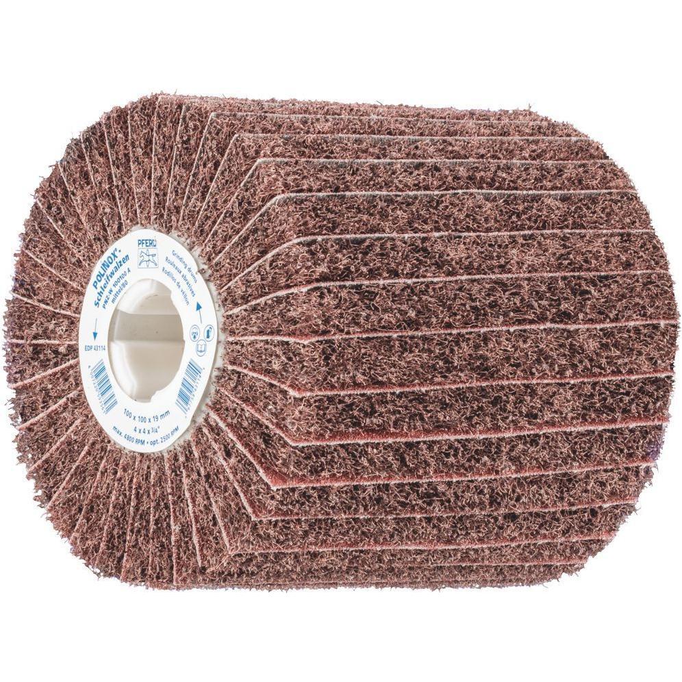 POLINOX grinding drums are especially well suited to work on large surfaces. The non‑woven abrasive material is arranged in multiple radial flaps, with abrasive cloth interlayers. The flap structure facilitates improved stock removal and achieves a coarser surface finish.