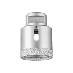 The PFERD 45 mm dry diamond drill bit is a high-performance tool designed for precise and efficient drilling in tiles and glazed tiles. Featuring vacuum-brazed diamond coating, it enables clean cuts for applications such as installing water connections, sockets, or light switches. The M14 thread allows for easy mounting on 115 mm or 125 mm angle grinders, making it ideal for construction and renovation professionals.