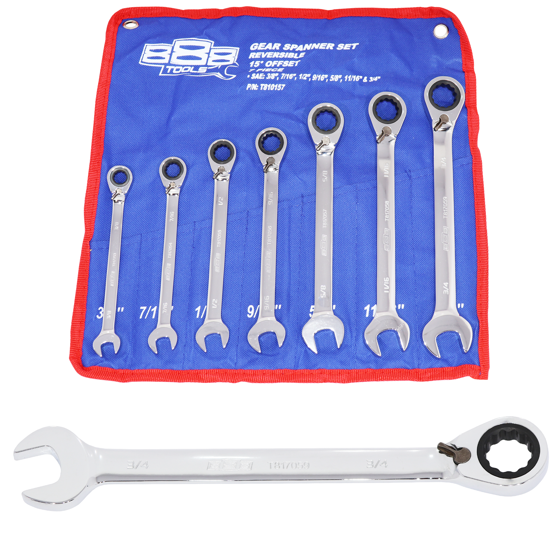 888 Tools - Spanner Set Gear Roe Reversible SAE 7Pc | T810157 by 888 Tools delivers fast, confident torque with a reversible gear action for professional automotive and workshop use. Stop by Industrial Shed, the one-stop industrial shop, to purchase.
