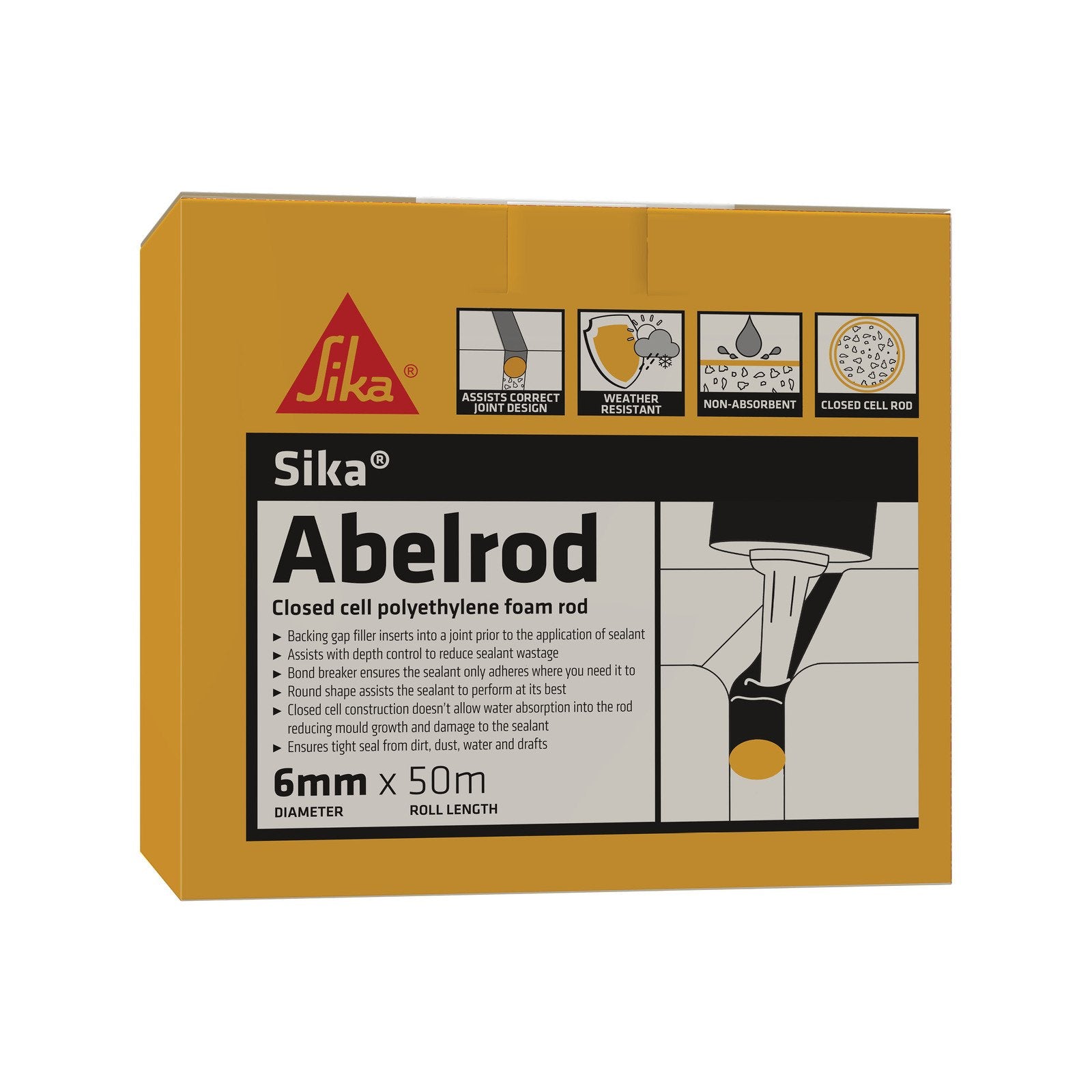 Abelflex Rod Filler 6mm X50M Roll by Sika delivers reliable backing for sealant joints, ideal for professional construction and glazing projects.