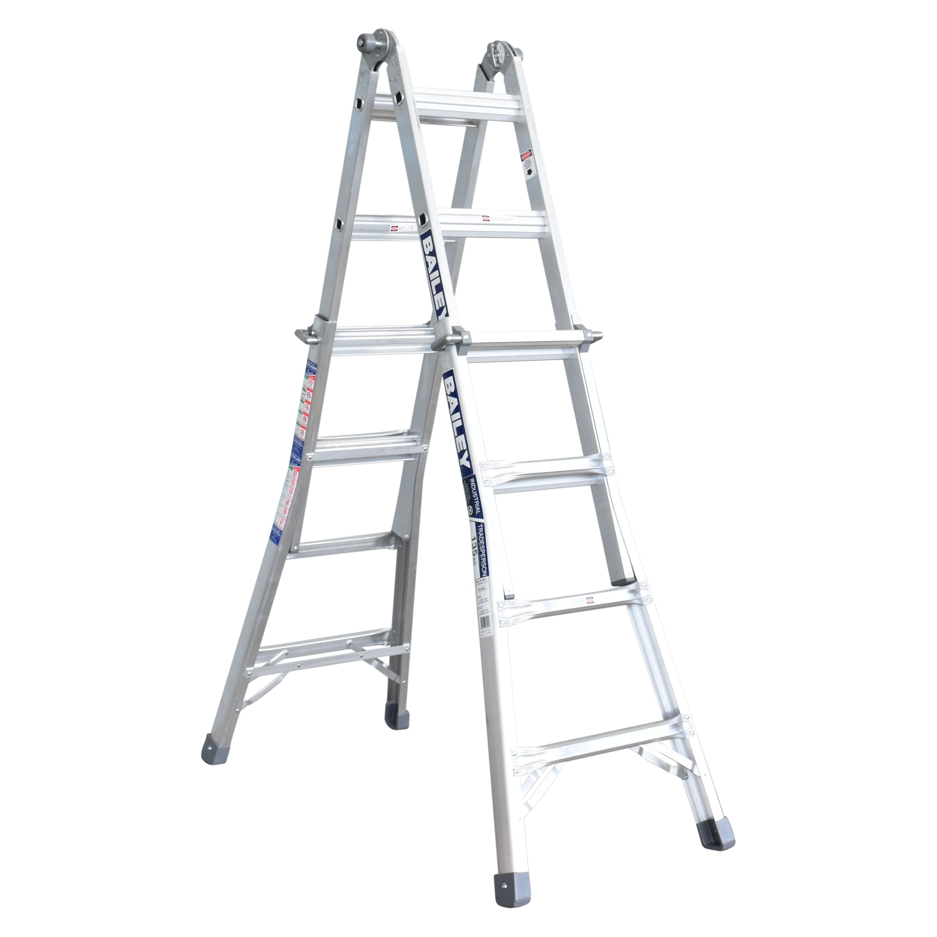 Ideal for the tradesperson or serious DIYer requiring the benefits of one of the most versatile ladders on the market. The Bailey FS13644 converts into four different configurations, a double sided stepladder, a single straight ladder, two individual trestles and a telescopic adjustable ladder.