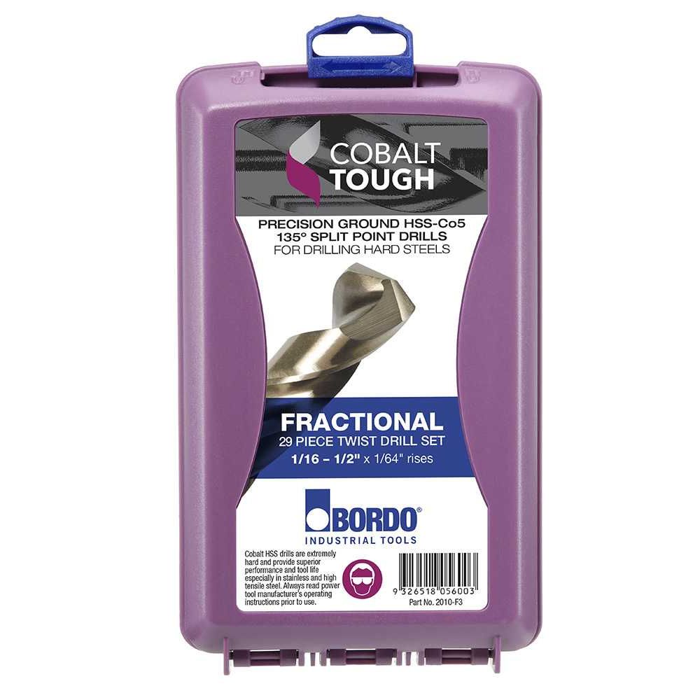Introducing the Bordo 1/16-1/2" 29 Piece HSS Cobalt Drill Set, a comprehensive collection designed specifically for tradespeople and industry professionals who demand precision and reliability in their work. Crafted from high-speed steel with cobalt, these drill bits deliver unmatched durability and longevity, making them an essential addition to any toolkit.