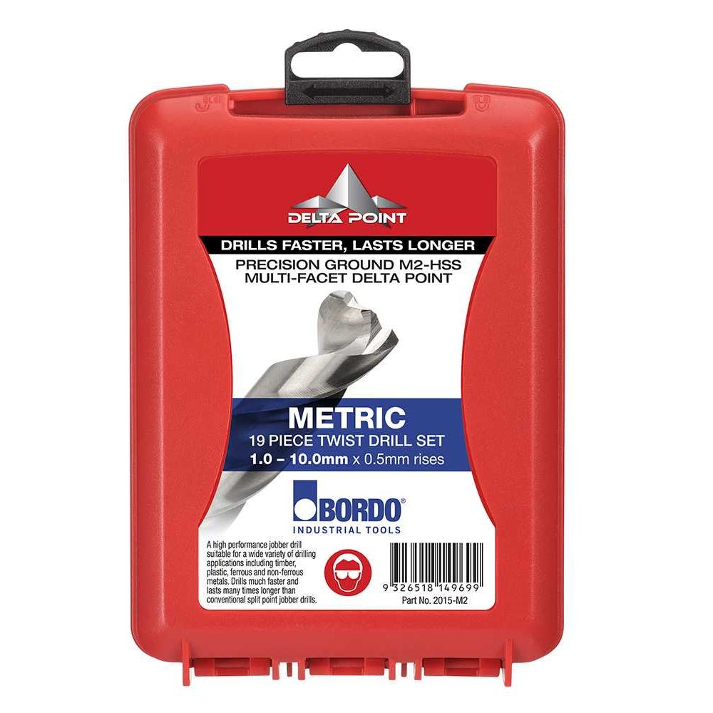 Introducing the Bordo 19 Pce - 1-10mm Delta Point Bright Finish HSS Drill Set | 2015-M2, an essential addition to your toolkit that combines precision and durability for the tradesman who demands the best. Engineered from high-speed steel (HSS), this drill set is designed for exceptional performance, ensuring that you can tackle a wide range of drilling tasks with ease.