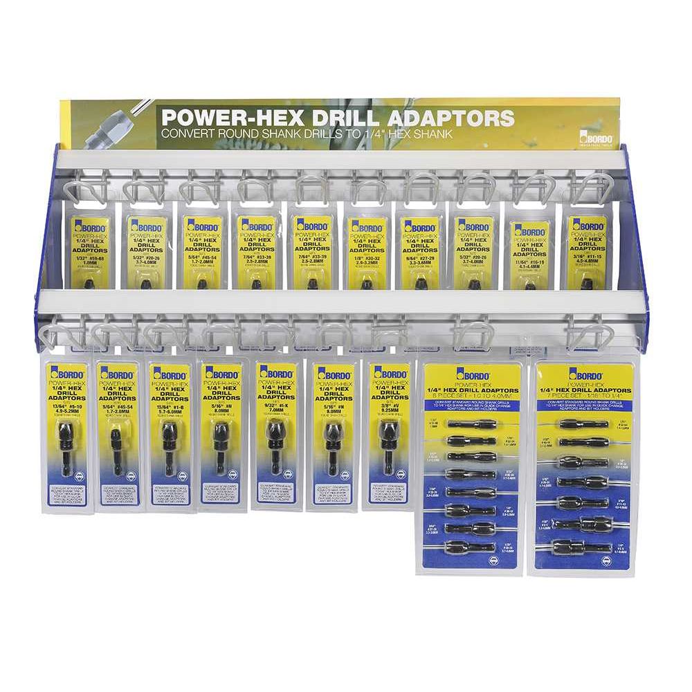 Introducing the Bordo Power-Hex Drill Adaptor - Hangsell - 2 Tier Merchandis | 2201-D1, a must-have for any tradesperson or DIY enthusiast looking to enhance their drilling capabilities. This premium drill adaptor is designed for maximum versatility and ease of use, allowing you to effortlessly connect various drill bits and accessories.