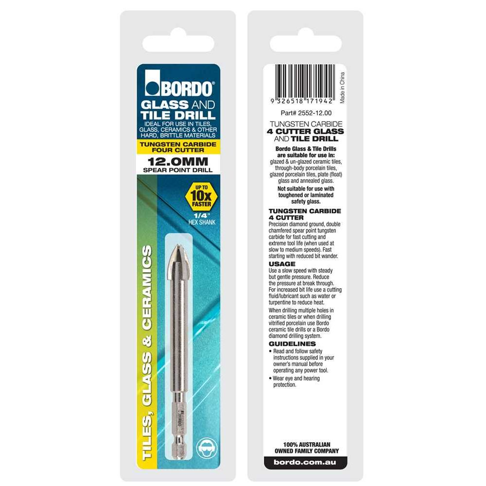 Whether you’re a technician, contractor, or DIY enthusiast, the Bordo - 12.00mm 4 Cut Glass and Tile Drill Bit is the perfect addition to your toolkit. Experience the difference that quality makes—equip yourself with Bordo cutting tools and take your projects to the next level.