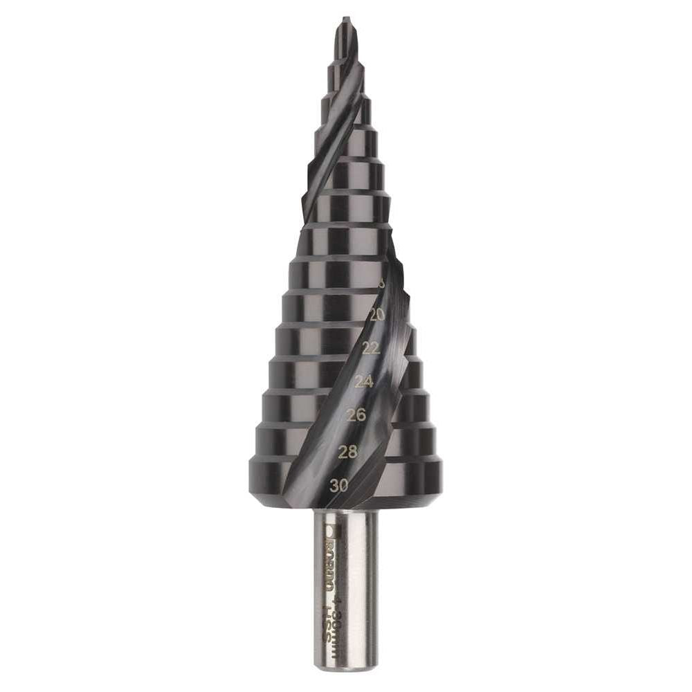 Introducing the Bordo 6-30 x 2mm Spiral Flute HSS Cobalt TiAlN Coated Step Drill | 2602-M3, the ultimate solution for precision drilling in tough materials. This step drill, designed for professionals, combines advanced technology and premium materials to deliver exceptional performance.