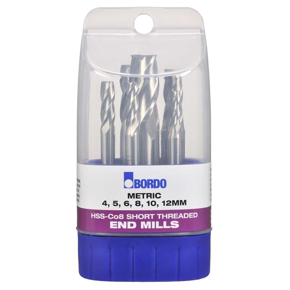 Introducing the Bordo 6 Pc 4-12mm Short Threaded HSS Cobalt End Mill Set | 6066-S1, the ultimate choice for tradespeople and technicians seeking precision and durability in their cutting tools. Manufactured from high-speed steel with a cobalt blend, this end mill set is designed to withstand rigorous use while delivering exceptional performance.