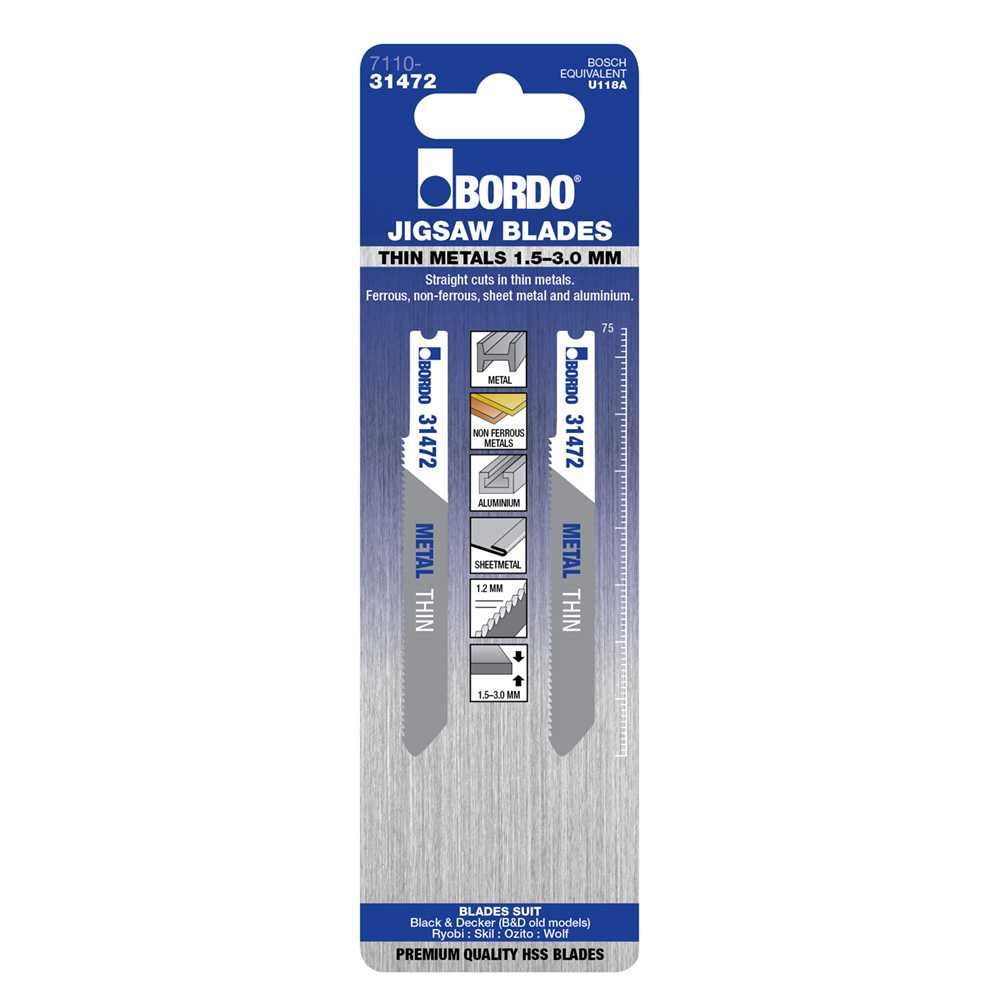 Introducing the Bordo - 75mm x 1.2T Thin Straight Cut Universal Jigsaw Blade 2Pk | 7110-31472, an essential addition to your toolkit that guarantees precision and efficiency in every cut. Designed specifically for tradespeople and DIY enthusiasts, these jigsaw blades are engineered to deliver smooth and accurate straight cuts in a variety of materials.