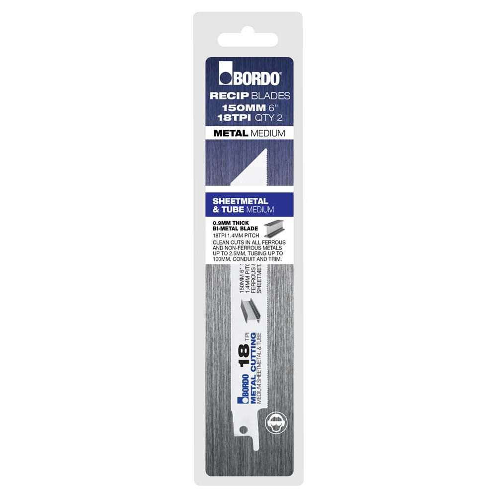 Introducing the Bordo 150mm (6") 18TPI Reciprocating Saw Blade - 2Pk Clam | 7200-0618C, the perfect addition to your toolbox for professional cutting applications. Designed for precision and durability, these saw blades are engineered to deliver exceptional performance on a variety of materials, making them a must-have for tradespeople, technicians, and industry buyers across Australia.