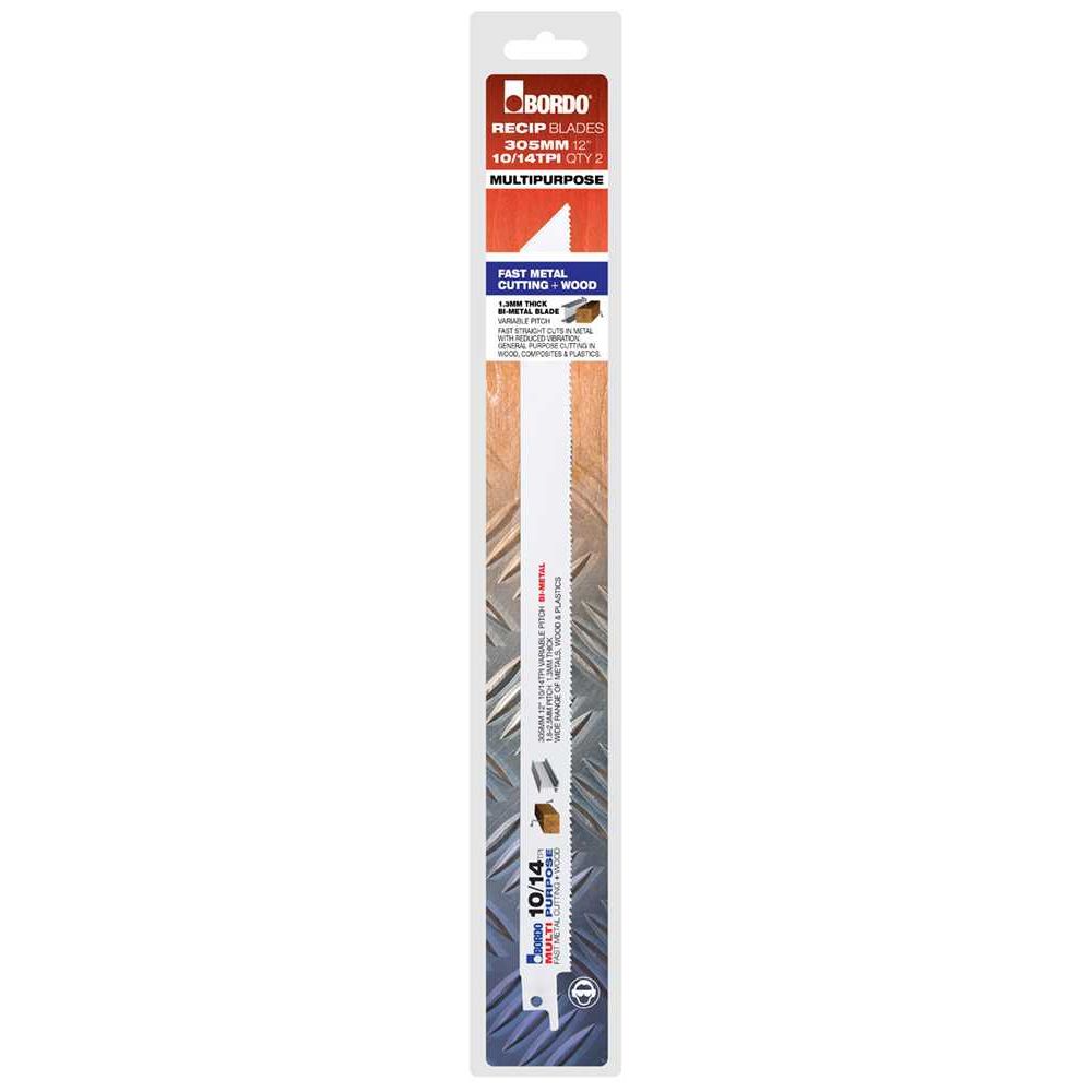Introducing the Bordo - 305mm (12") 10/14TPI Reciprocating Saw Blade - 2Pk Clam | 7200-121014C, the ultimate solution for tradespeople who demand precision and durability in their cutting tools. Designed for both professional and DIY applications, these reciprocating saw blades are engineered to handle a variety of materials, ensuring you get the job done effectively and efficiently.