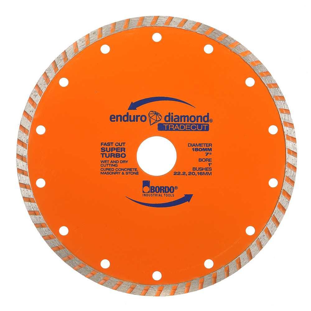The Bordo 180mm TradeCut Turbo Diamond Blade (model 7472-180) is engineered for exceptional performance, making it an indispensable tool for tradespeople and industry professionals. This premium saw blade offers superior cutting capabilities on a wide range of materials, including concrete, brick, and masonry, ensuring you get the job done with precision and efficiency.