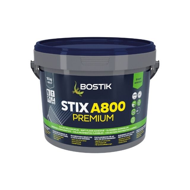 Bostik Stix A800 Premium is a high-performance acrylic adhesive built for bonding all types of resilient floor coverings — including vinyl, LVT, carpet, and linoleum — to absorbent and non-absorbent substrates. With superior grab, extended working time, and low VOC, it delivers the professional reliability flooring contractors demand on every install.