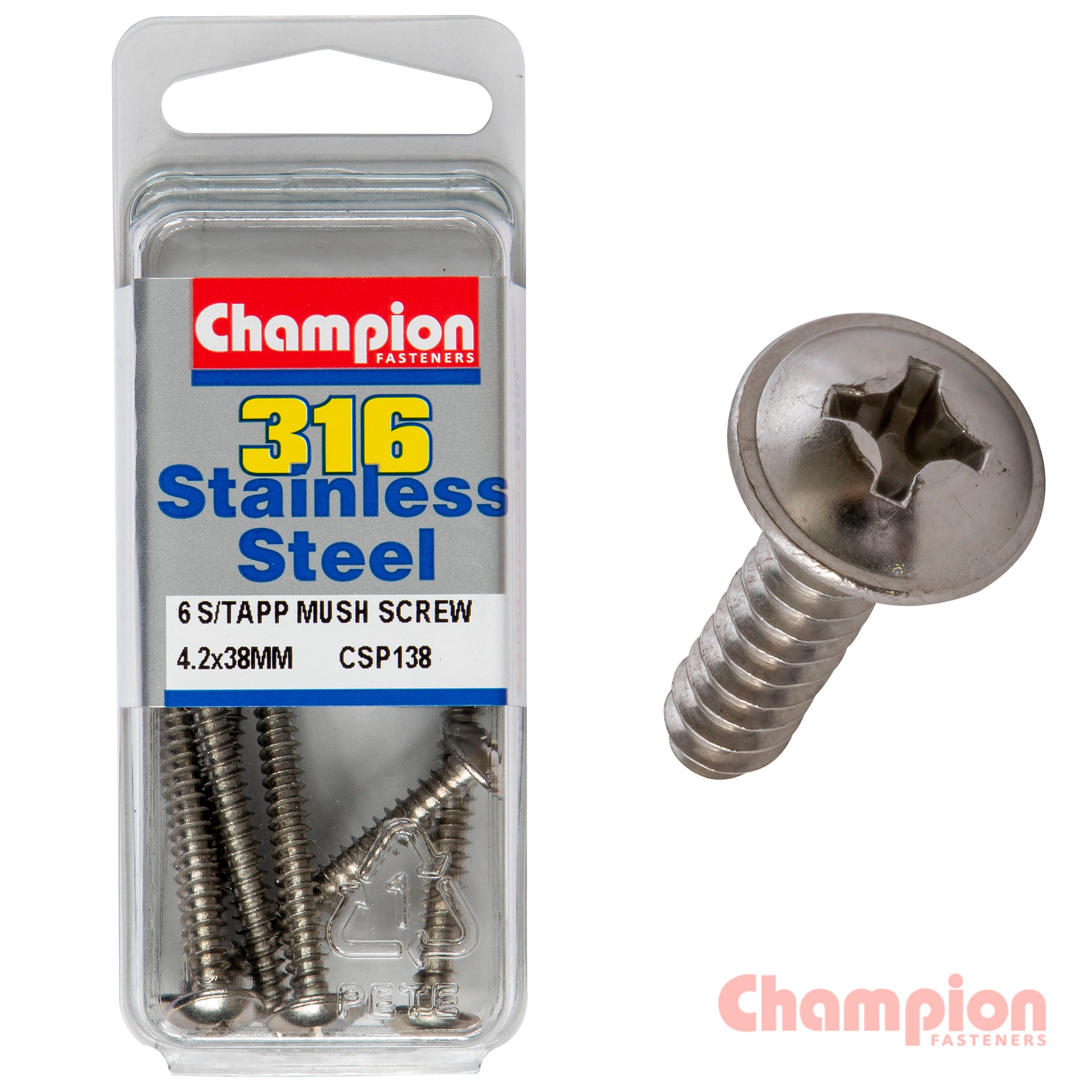 Industrial Shed proudly distributes Champion - 4.2mm x 38mm Mushroom Head Self-Tapping Screws | CSP138 by Champion Fasteners, delivering superior fastening strength for a variety of construction and DIY projects. Designed for ease of use, these self-tapping screws eliminate the need for pre-drilling, making them an ideal choice for both professionals and enthusiasts.