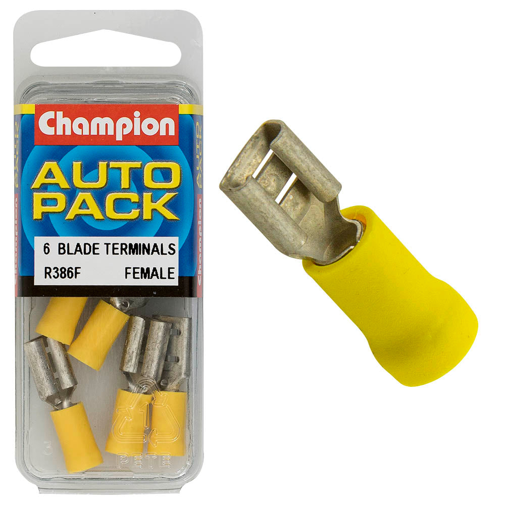 Add these Champion - CRIMP TERMINALS - BLADE - FEMALE - YELLOW - 8mm | R386F to your toolkit today, and experience the difference in quality and durability. Your satisfaction is our priority!