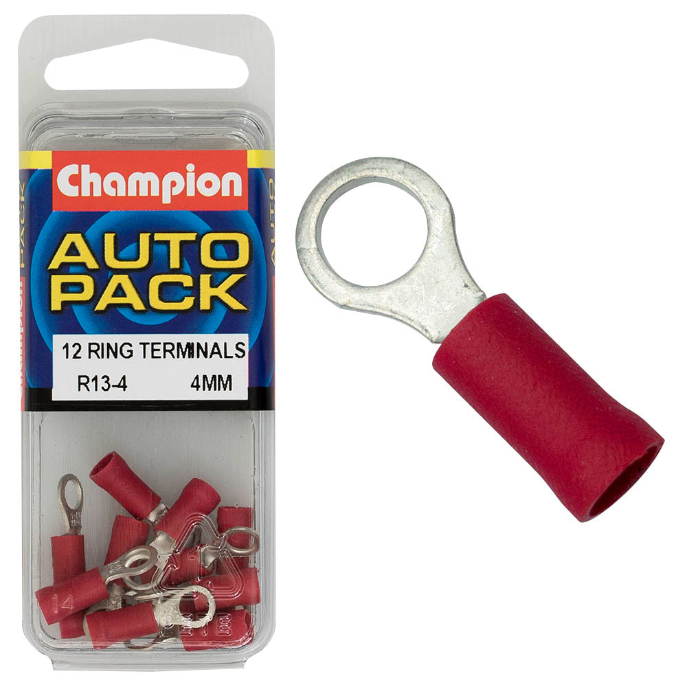 Industrial Shed proudly distributes Champion - CRIMP TERMINALS - RING - RED - 4mm | R13-4 by Champion Fasteners, delivering exceptional electrical connectivity for reliable wiring solutions. These crimp terminals are ideal for automotive, marine, and general-purpose applications where a secure and durable connection is essential.