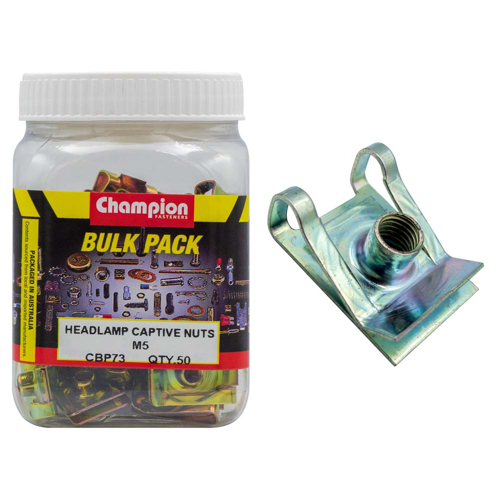 Industrial Shed proudly distributes Champion - HEAD LAMP CAPTIVE NUTS M5 | CBP73 by Champion Fasteners, designed to deliver superior stability and reliability for all your fastening needs. These captive nuts are perfect for various applications in industrial, automotive, and construction settings, ensuring your projects stay secure and efficient.