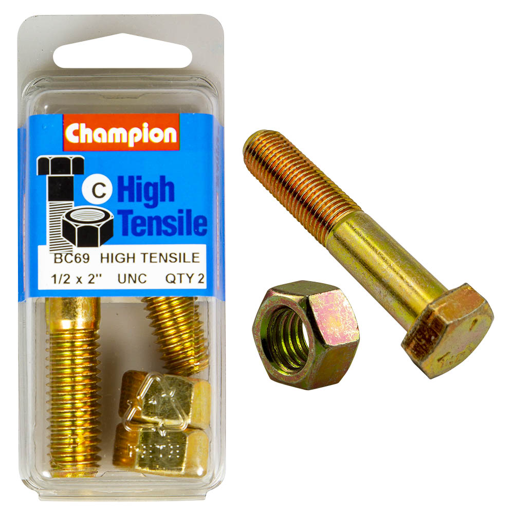 Industrial Shed proudly distributes Champion - HEX BOLTS & NUTS - HIGH TENSILE - 1/2" x 2" - UNC - GRADE 5 | BC69 by Champion Fasteners, delivering unparalleled strength and durability for all your fastening needs. These high tensile bolts and nuts are perfect for heavy-duty applications, ensuring your projects withstand the test of time.