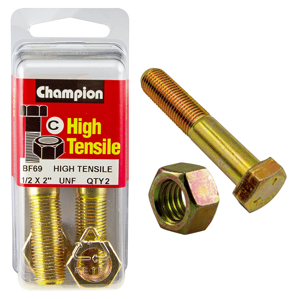 Industrial Shed proudly distributes Champion - HEX BOLTS & NUTS - HIGH TENSILE - 1/2" x 2" - UNF - GRADE 5 | BF69 by Champion Fasteners, delivering exceptional strength and durability for various industrial applications.