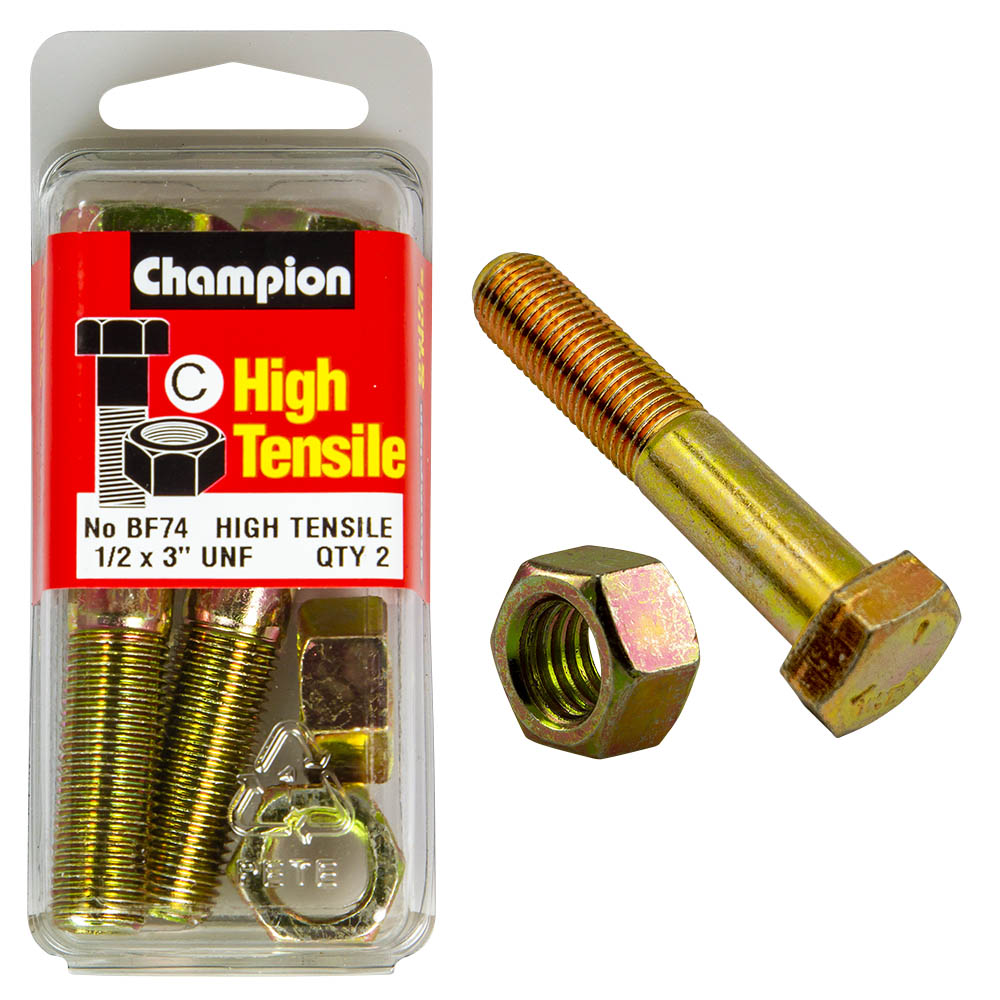Industrial Shed proudly distributes Champion - HEX BOLTS & NUTS - HIGH TENSILE - 1/2" x 3" - UNF - GRADE 5 | BF74 by Champion Fasteners, delivering exceptional strength and reliability for a wide range of industrial and construction applications.