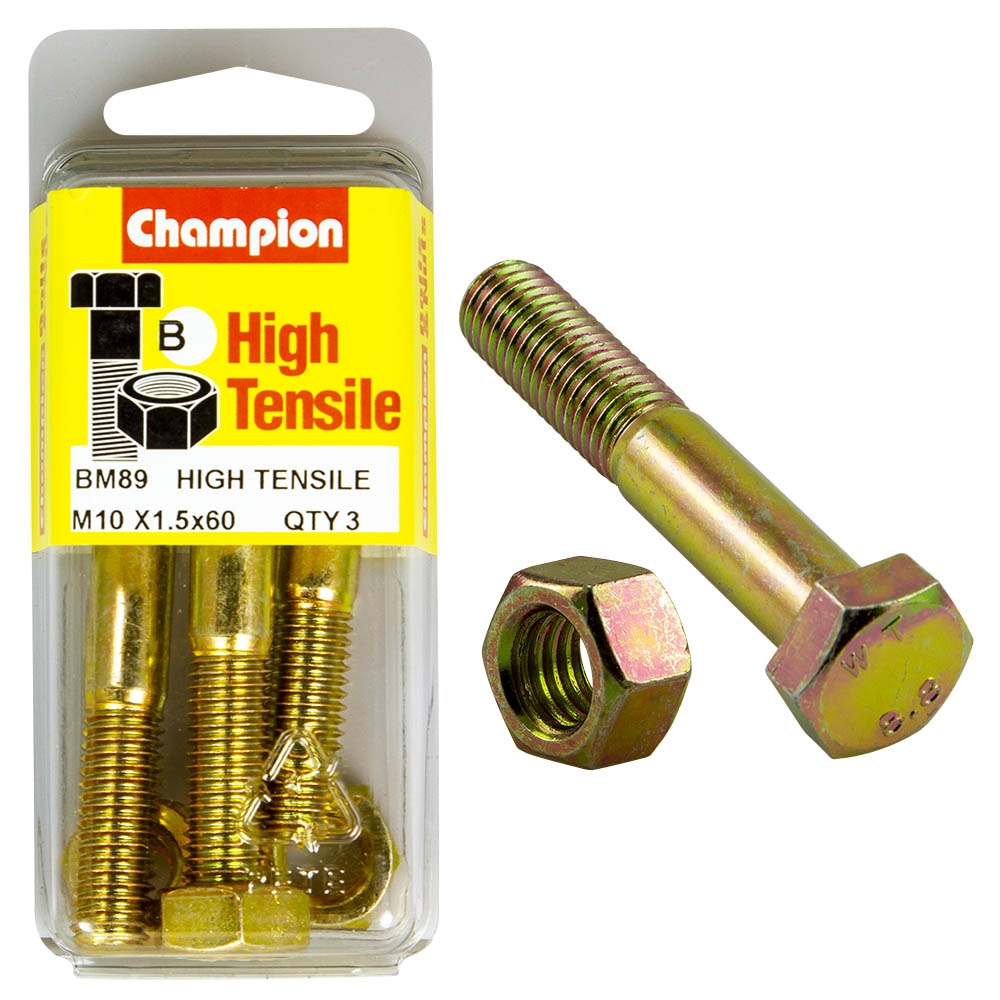 Industrial Shed proudly distributes Champion HEX BOLTS & NUTS - HIGH TENSILE - M10 x 60mm - GRADE 8.8 | BM89 by Champion Fasteners, delivering exceptional strength and durability for a variety of heavy-duty applications.