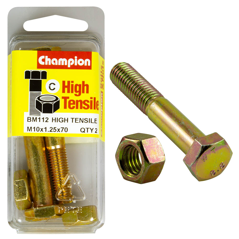 Industrial Shed proudly distributes Champion - HEX BOLTS & NUTS - HIGH TENSILE - M10 x 70 x 1.25mm - GRADE 8.8 | BM112 by Champion Fasteners, delivering unmatched strength and durability for your heavy-duty fastening needs.