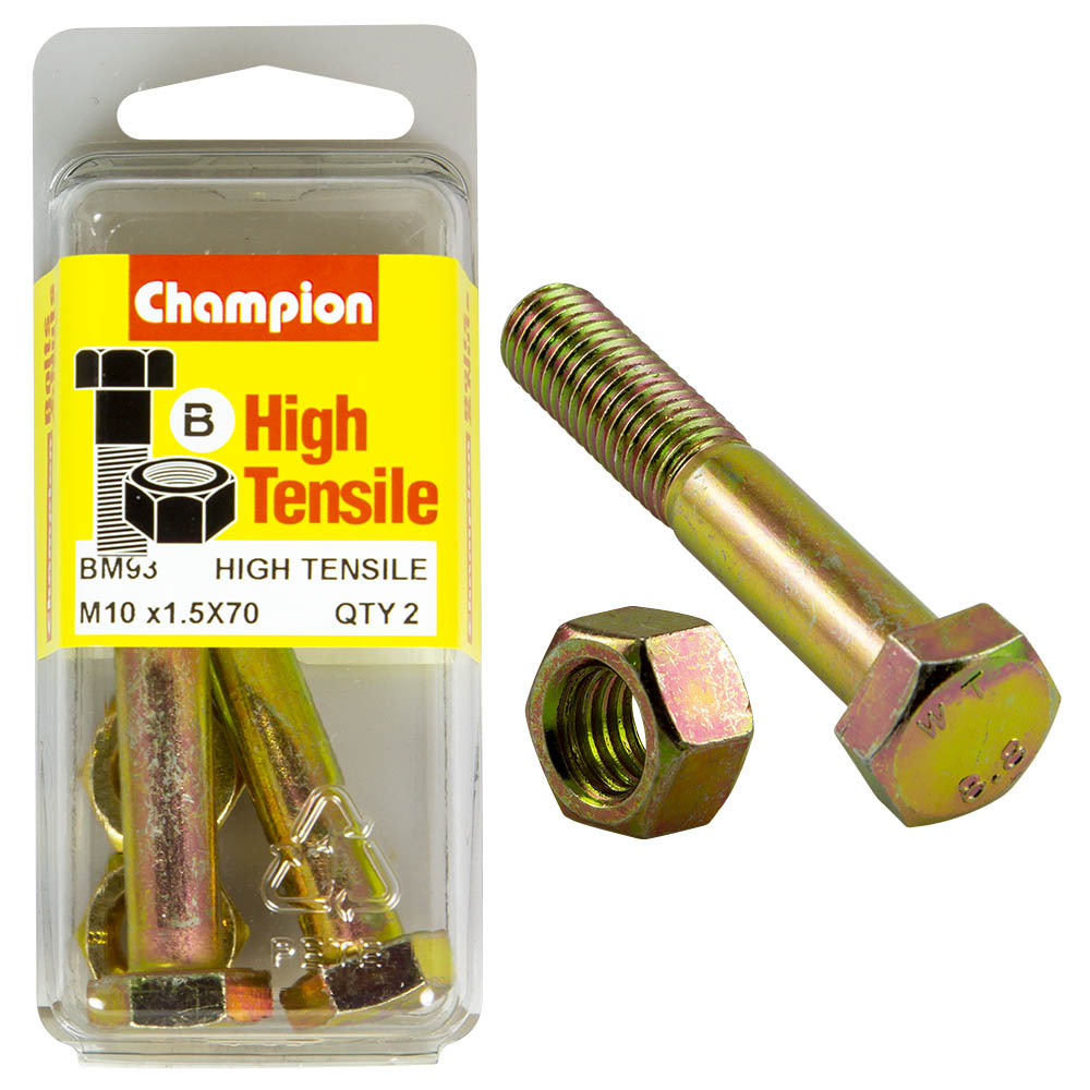 Industrial Shed proudly distributes Champion - HEX BOLTS & NUTS - HIGH TENSILE - M10 x 70mm - GRADE 8.8 | BM93 by Champion Fasteners, delivering exceptional strength and reliability for various fastening applications.