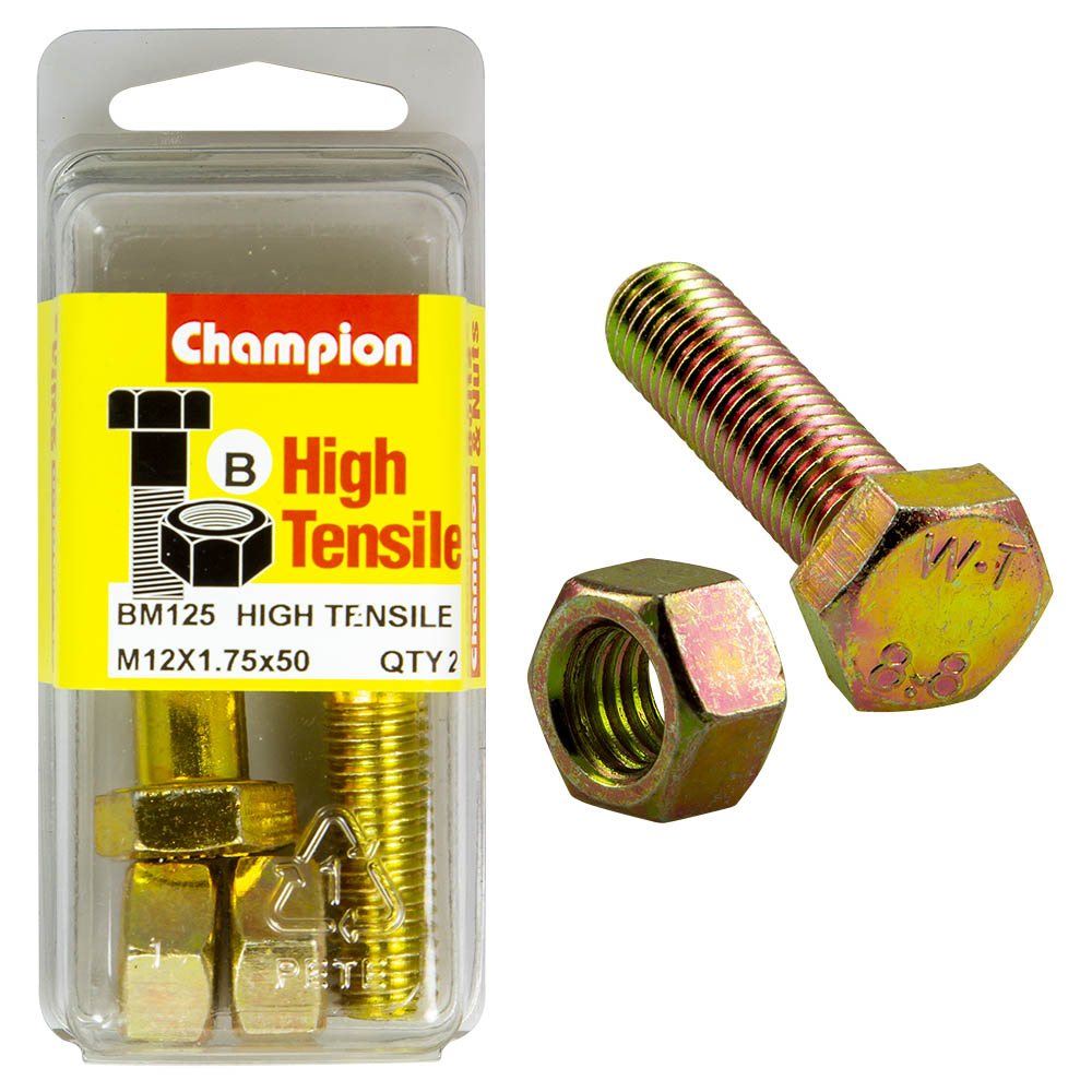 Industrial Shed proudly distributes Champion - HEX BOLTS & NUTS - HIGH TENSILE - M12 x 50mm - GRADE 8.8 | BM125 by Champion Fasteners, delivering superior strength and durability for demanding industrial applications.