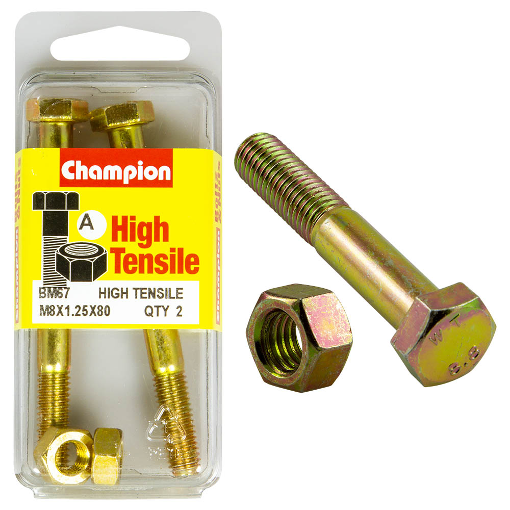 Industrial Shed proudly distributes Champion - HEX BOLTS & NUTS - HIGH TENSILE - M8 x 80mm - GRADE 8.8 | BM67 by Champion Fasteners, delivering exceptional strength and durability for all your fastening needs. These high tensile hex bolts and nuts are designed for heavy-duty applications, ensuring a secure fit in any construction or industrial project.