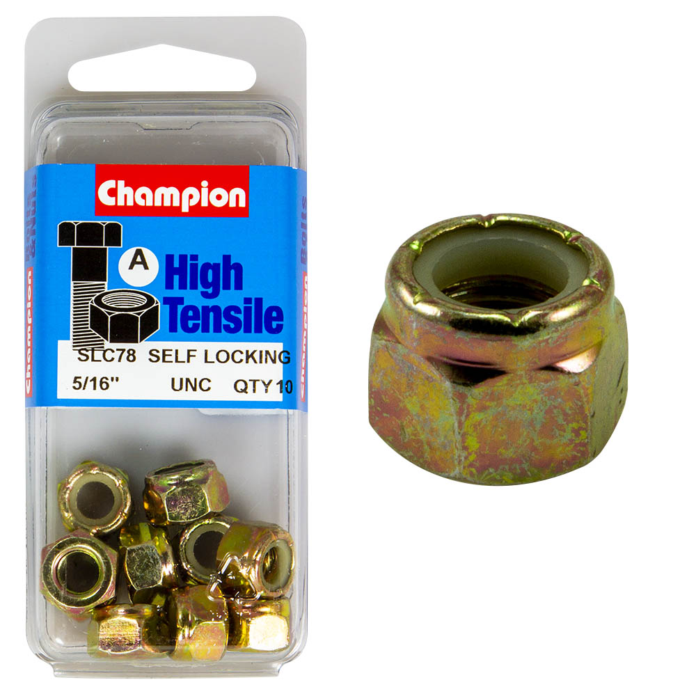 Perfect for mechanics, construction professionals, and DIY enthusiasts, these hex nuts are backed by a quality guarantee that ensures reliability and performance. Whether you are assembling machinery or securing components, the Champion self-locking hex nuts provide peace of mind with their innovative design and robust construction.