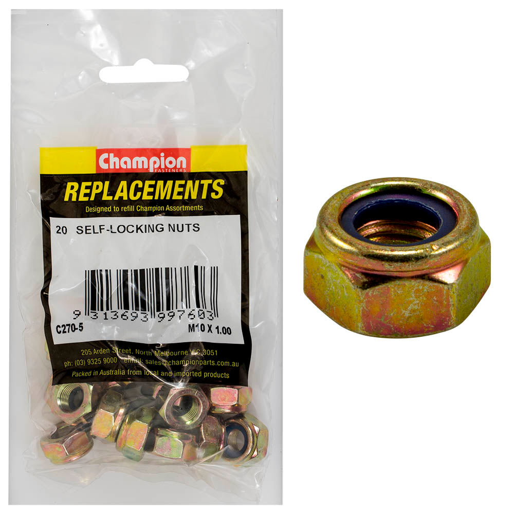 Industrial Shed proudly distributes Champion - HEX NUTS-SELF LOCKING-NYLON INSERT-M10 x 1.00mm | C270-5 by Champion Fasteners, delivering secure fastening solutions for a variety of applications. These self-locking hex nuts are designed to prevent loosening under vibration, making them essential for any project requiring reliability and stability.
