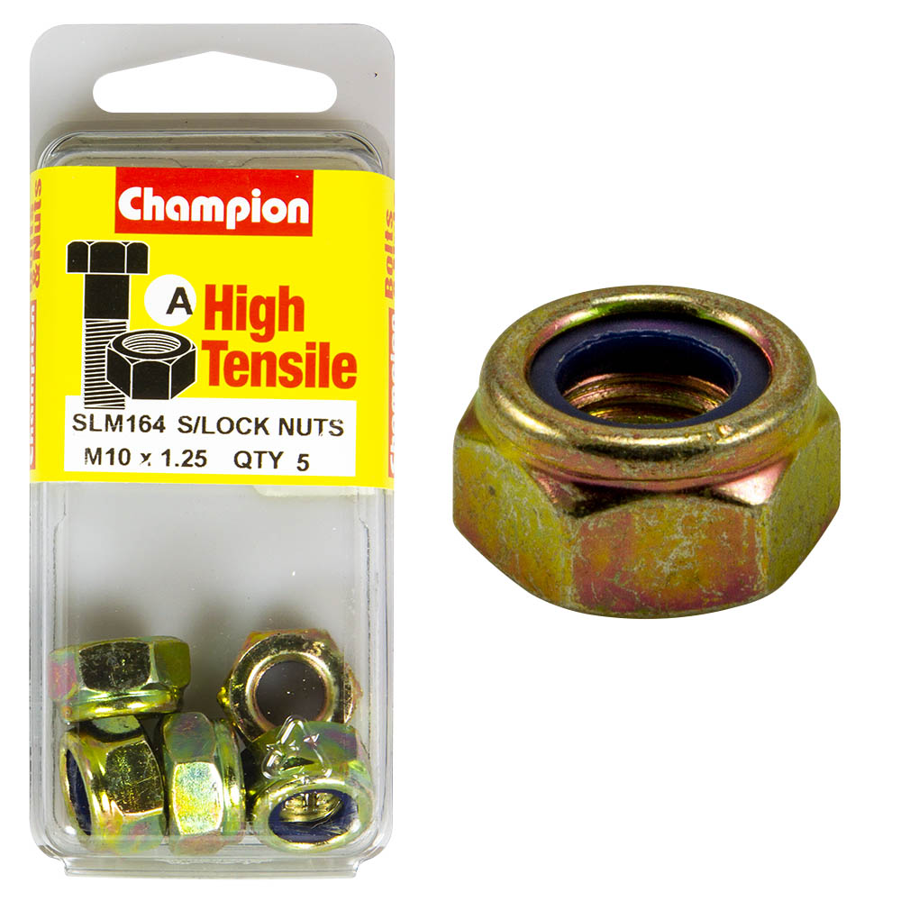 Industrial Shed proudly distributes Champion - HEX NUTS - SELF-LOCKING - NYLON INSERT - M10 x 1.25mm | SLM164 by Champion Fasteners, delivering superior stability and security for your fastening needs. These self-locking hex nuts are designed to prevent loosening under vibration, making them ideal for various applications in construction, machinery, and automotive assemblies.