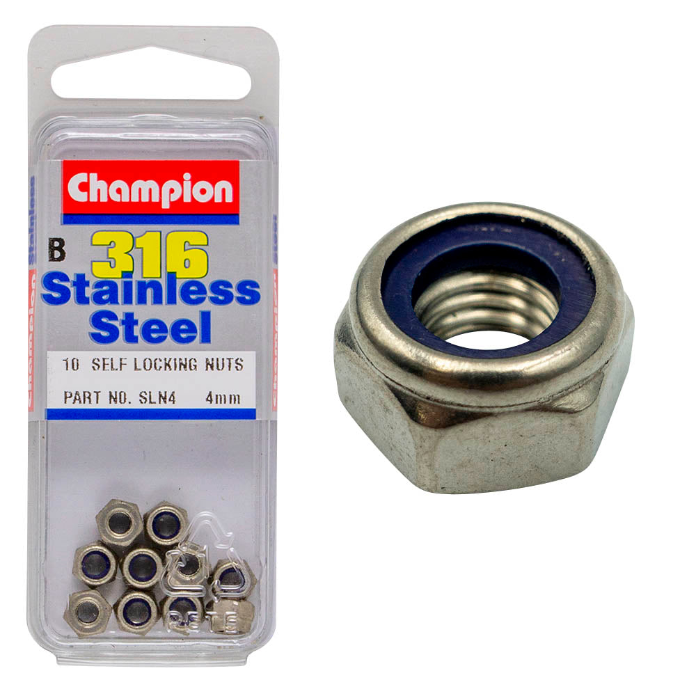 Industrial Shed proudly distributes Champion - HEX NUTS-SELF LOCKING-NYLON INSERTS-STAINLESS STEEL-M4x0.7mm-316/A4 | SLN4 by Champion Fasteners, delivering exceptional reliability and stability for your fastening needs. These premium self-locking hex nuts are designed specifically for marine and outdoor applications, ensuring that your projects withstand the toughest conditions.