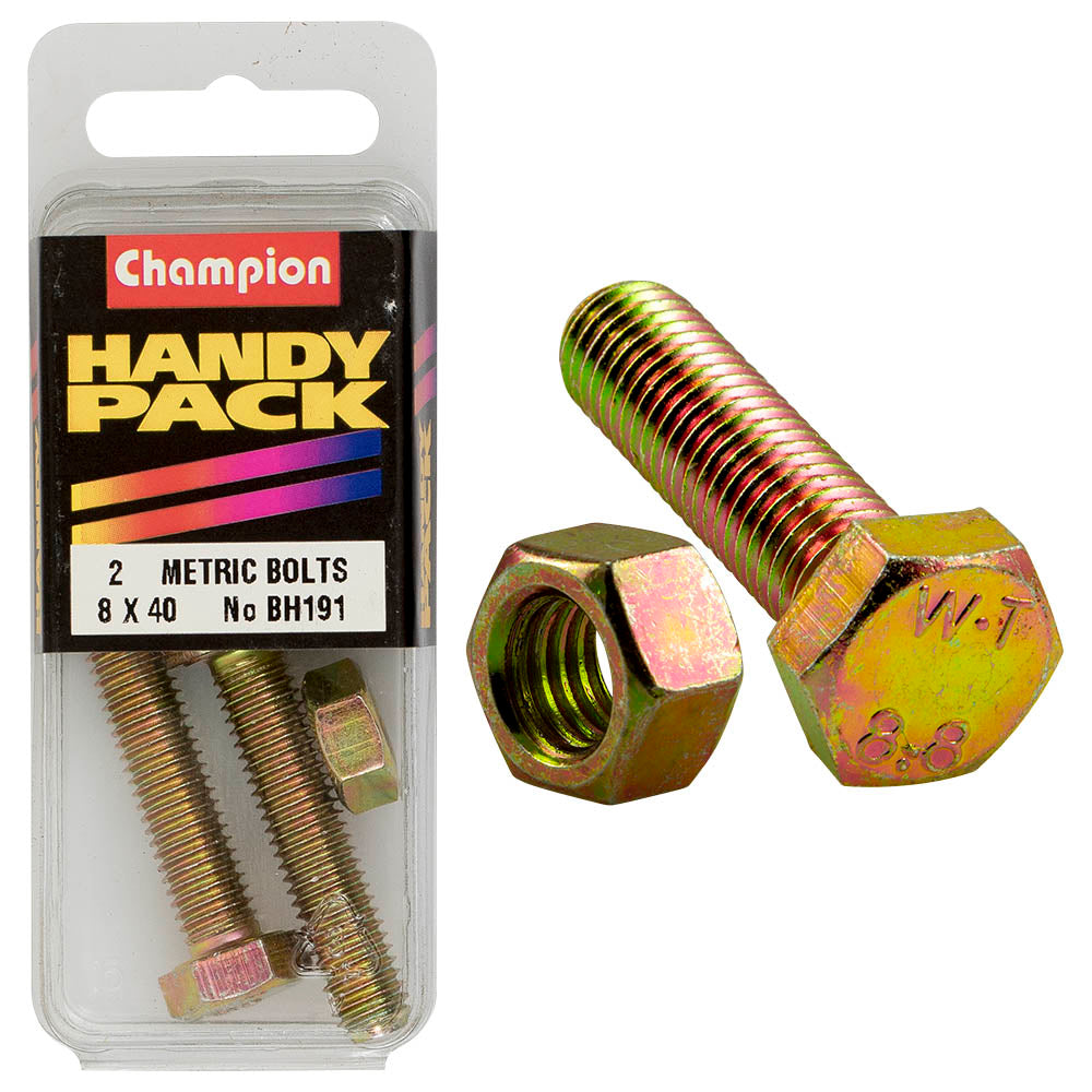 Industrial Shed proudly distributes Champion - HEX SET SCREWS-HIGH TENSILE-M8 x 40mm-GRADE 8.8 & HEX PLAIN NUTS-M8 x 1.25mm-CLASS 8 | BH191 by Champion Fasteners, delivering exceptional strength and reliability for your heavy-duty fastening needs.