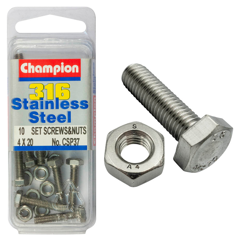 Industrial Shed proudly distributes Champion HEX SET SCREWS & NUTS - STAINLESS STEEL - M4x20mm & M4x0.7mm - 316/A4 | CSP37 by Champion Fasteners, delivering durability and corrosion resistance for heavy-duty applications.