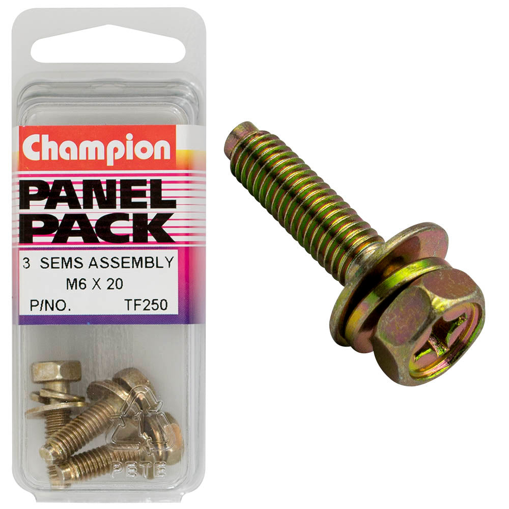 Industrial Shed proudly distributes Champion - HEX SET SCREWS-SEMS-HEX IND COMBO DVE-FLAT/SPRING WASHER-PILOT-M6x20mm | TF250 by Champion Fasteners, delivering exceptional fastening strength for industrial applications. These hex set screws are designed specifically for reliable assembly in various machinery and structural setups.
