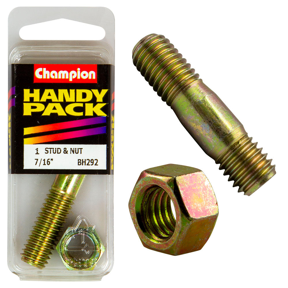 Industrial Shed proudly distributes Champion - MANIFOLD STUDS & NUTS-7/16" x 2-1/4"-UNC | BH292 by Champion Fasteners, delivering exceptional strength and durability for automotive and industrial applications. Designed to provide reliable fastening solutions, these manifold studs and nuts are ideal for professionals seeking high-quality performance.