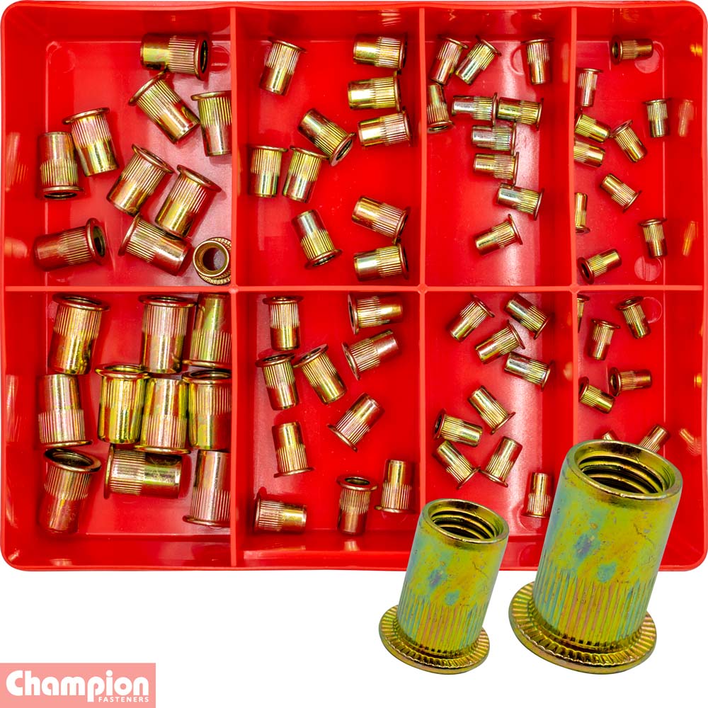 Industrial Shed proudly distributes Champion - Rivet Nut Insert Assortment - Steel | CA505 by Champion Fasteners, delivering exceptional strength and versatility for all your fastening needs. This comprehensive assortment is ideal for automotive, construction, and general maintenance applications, ensuring you have the right rivet nuts at your fingertips.