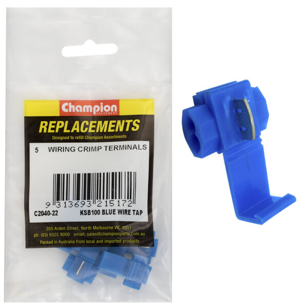 Industrial Shed proudly distributes Champion - SELF STRIPPING WIRE TAPS-BLUE | C2040-22 by Champion Fasteners, delivering efficient and reliable wire stripping for electrical applications. This innovative tool is perfect for electricians and DIY enthusiasts who demand precision and quality in their projects.