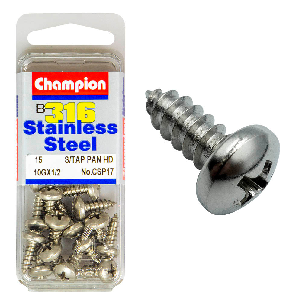 Industrial Shed proudly distributes Champion - SELF TAPP SCREWS-PAN-PHILLIPS-STAINLESS STEEL-4.8x13mm-316/A4 | CSP17 by Champion Fasteners, delivering unparalleled durability and reliability for all your fastening needs. These stainless steel self-tapping screws are designed for use in a variety of applications, including construction, automotive, and marine environments.