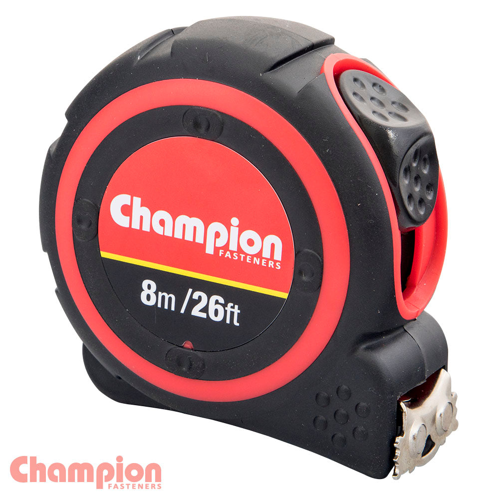 Industrial Shed proudly distributes the Champion - TAPE MEASURE - 8M x 25mm | CTM-2 by Champion Fasteners, delivering precision and reliability for all your measuring needs. This tape measure is an essential tool for professionals and DIY enthusiasts alike, ensuring accurate measurements in every project.