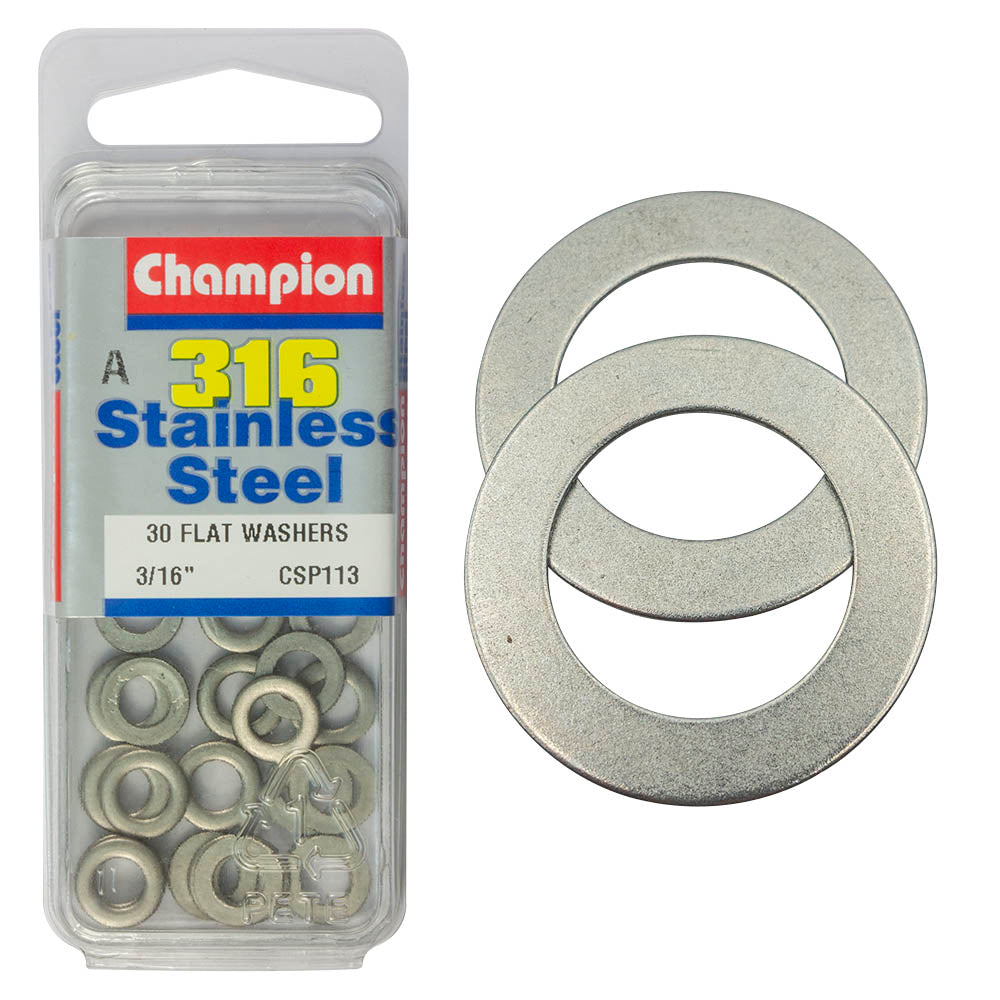 Industrial Shed proudly distributes Champion - WASHERS-FLAT-STAINLESS STEEL-5mm-316/A4 | CSP113 by Champion Fasteners, delivering superior durability for your fastening needs. Designed to withstand corrosion and wear, these flat washers are ideal for enhancing the reliability of your applications.