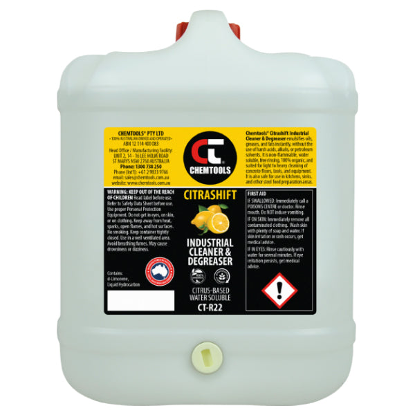 Get it done right with Chemtools ‘Citrashift’ Cleaner/Degreaser, Industrial, 20L — professional‑grade gear for workshops, maintenance crews, and site teams across the Mornington Peninsula. Trusted by trades who rely on Industrial Shed for tools and trade supplies.