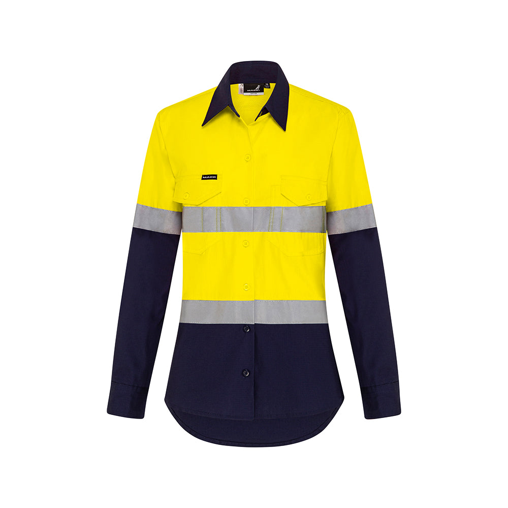 Worksense - Boomerang Womens LS Ripstop 2T Hoop Taped Vented Shirt Yellow/Navy Size 10 | CWL918697YNW010