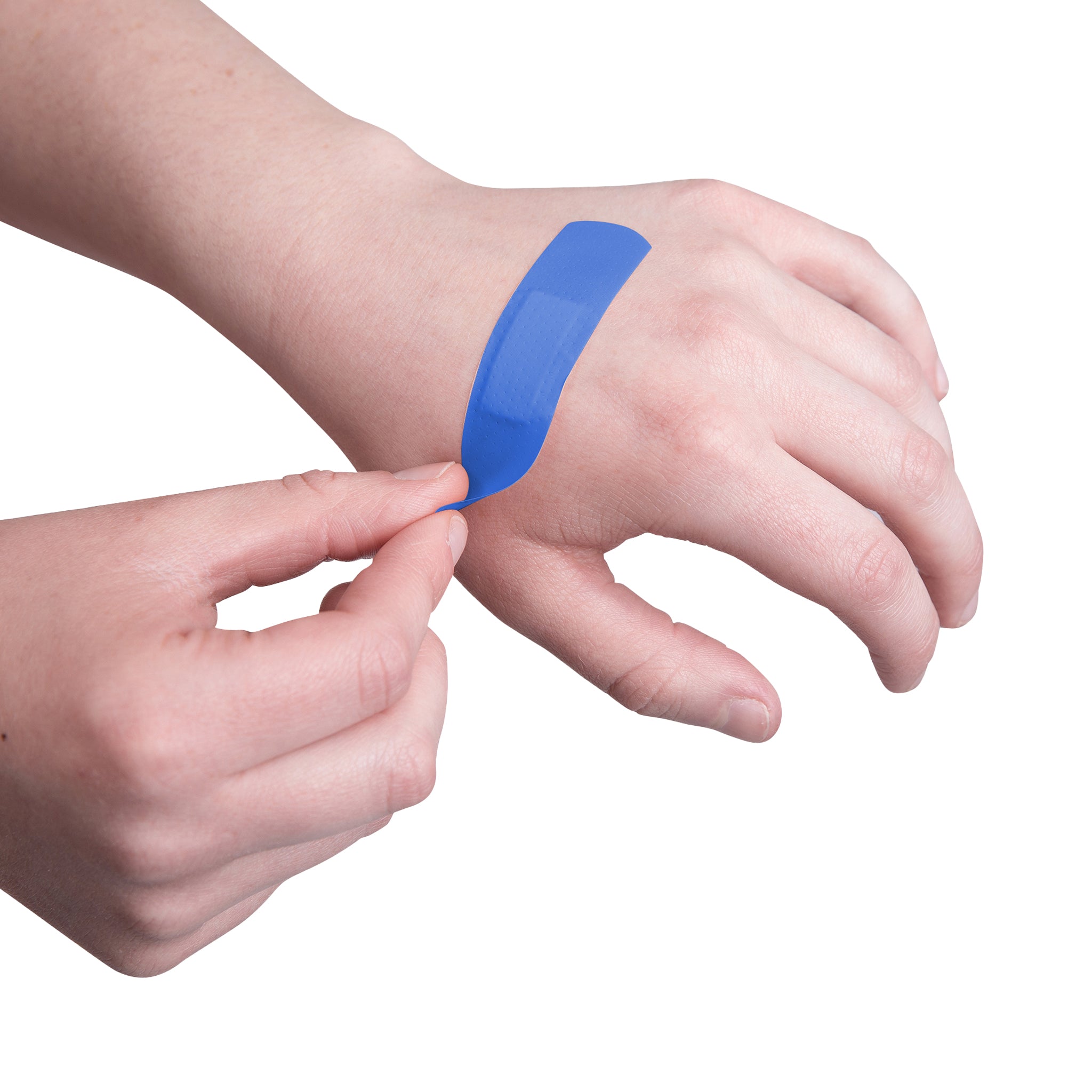 FastAid's blue food grade plasters are metal and visual detectable plasters designed for use in food preparation and production areas to ensure compliance with food safety standards. Our plasters are breathable and flexible plastic plasters suited for minor wound care. Non-stick dressing pad provides cushion comfort for the wound, while allowing for gentle removal. Contains 50 blue plasters with a size of 72 x 19mm each packed in individual sterile paper pouches. Packed in FastAid's unique colour coded retail packaging, complete with easy-to-open box perforation. Also compatible as a refill for FastAid's Easy-Refill™ First Aid Kits. Available from Industrial Shed — Mornington Peninsula trade supplies for FastAid kits, tools, and site gear.