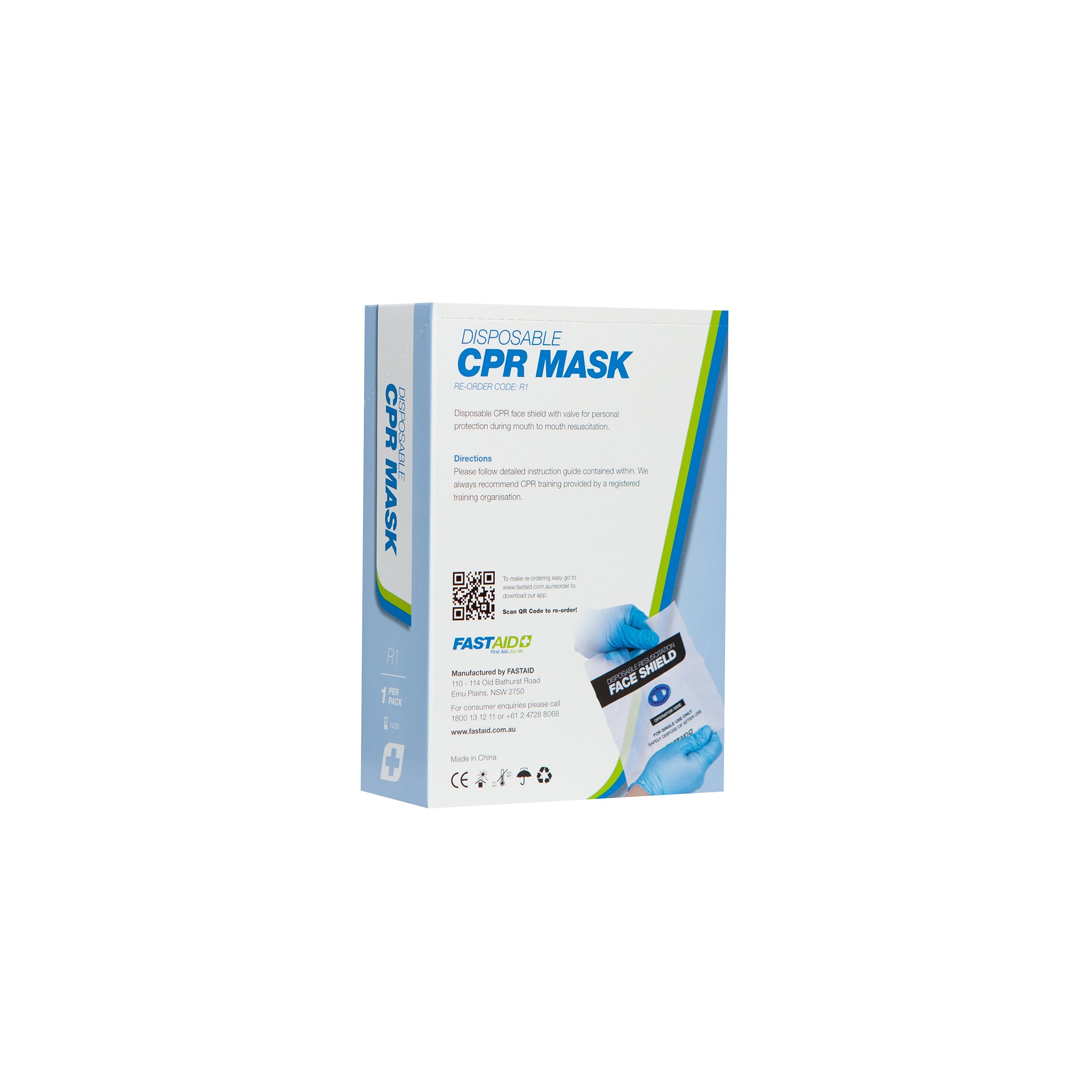 FastAid's disposable CPR mask provides a hygienic latex-free barrier between the rescuer and the patient when administering mouth-to-mouth resuscitation. Also includes a plastic 1-way valve. Contains 1 disposable face shield in an easy access plastic bag with user instructions. Packed in FastAid's unique colour coded retail packaging, complete with easy-to-open box perforation. Also compatible as a refill for FastAid's Easy-Refill™ First Aid Kits. Available from Industrial Shed — Mornington Peninsula trade supplies for FastAid kits, tools, and site gear.