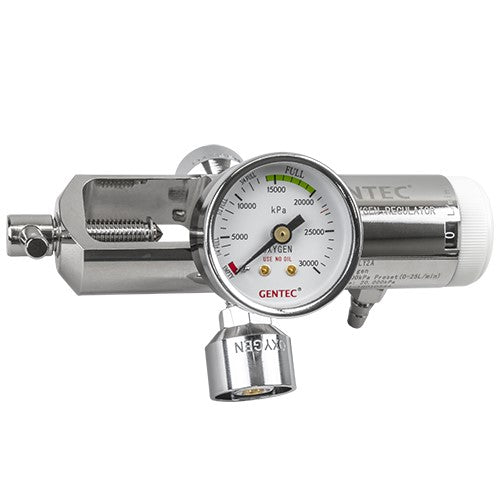 The FastAid Twin Outlet Oxygen Therapy Regulator 0 - 25 L/min is a 12 setting click flow style regulator designed for administering oxygen therapy. The regulator is TGA registered and compliant with all relevant Australian standards, manufactured with a quality chrome plated brass body and a brass chamber. Twin self-seal SIS outlets and 1 hose barb allow for simultaneous oxygen delivery to multiple patients or devices, providing flexibility in emergency or clinical settings. It also enables the use of different oxygen-related equipment, such as resuscitators, suction aspirators, and flowmeters. Available from Industrial Shed — Mornington Peninsula trade supplies for FastAid kits, tools, and site gear.