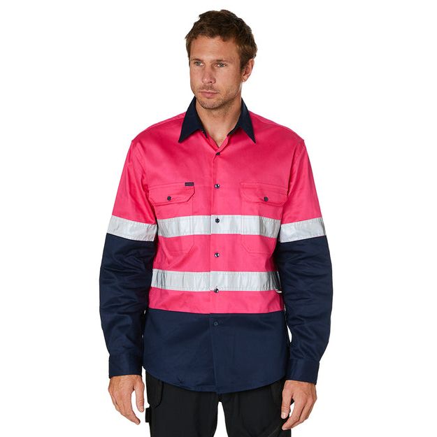 Worksense - Shirt Unisex Ls Op Frt Ctn Hoz Pink / Navy Size Medium | FM9186490PND00M