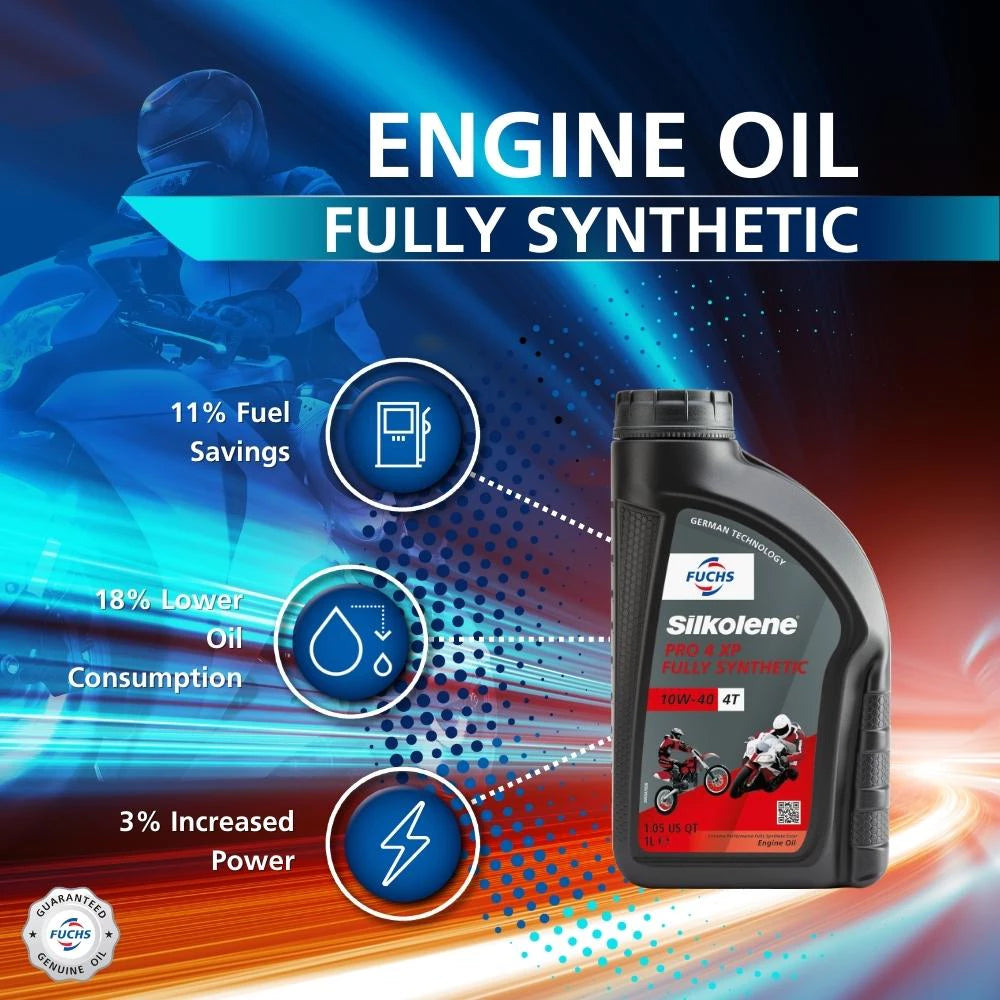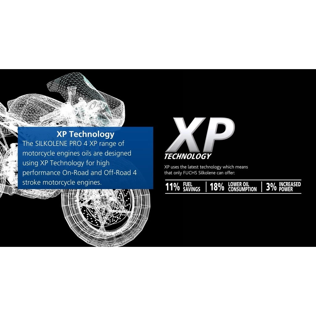 The FUCHS Silkolene PRO 4 10W‑40 XP (602011572) is the ultimate fully-synthetic 4-stroke engine oil for riders and trade professionals demanding peak power, reliability, and protection—on the road, track, or trail. This advanced ester-based lubricant is engineered using cutting-edge XP Technology to optimize performance and extend engine life in the harshest conditions.